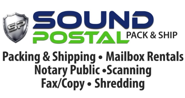 We're proud to be an authorized shipper for USPS, FedEx, and DHL — meaning you can compare rates and drop off with any carrier, all in one stop. But we're far more than a shipping counter. Sound Postal offers mailbox rentals with a real street address, virtual mail services, notary services (our entire staff are licensed public notaries), and a full suite of business support — from printing business cards, banners, and flyers to copying, scanning, faxing, laminating, and secure document shredding.